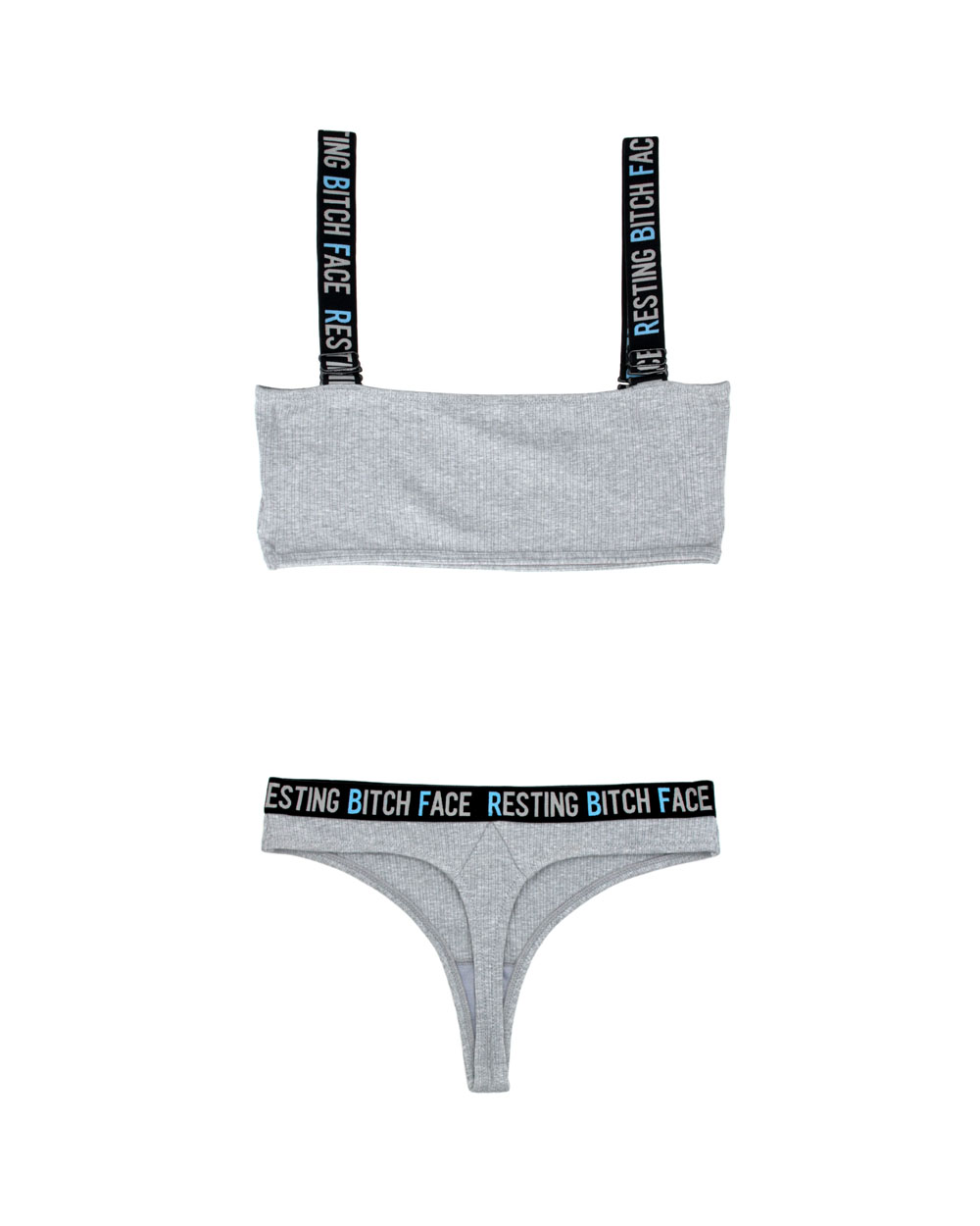 Resting Bitch Face Crop Top and Thong Panty Set – Gray – L/xl